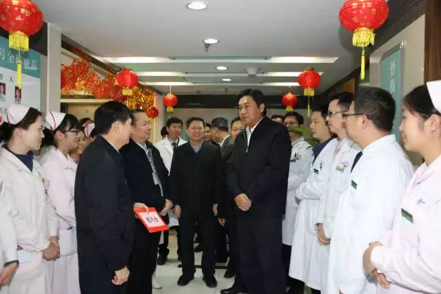 在广东省中医院骨伤一科,邓海光副省长与医护人员亲切交谈,在了解到现在人们的就医观念发生了很大改变,以前过年期间很多患者都是要求出院回家过年,但现在人们却专门趁春节假期来住院治疗、择期手术,即使春节放假期间医务人员也非常忙碌的情况后,邓海光副省长表示:医务人员确实非常值得大家尊敬,要从生活待遇和工作环境等方面好好关心他们。他称赞省中医院的管理水平好,在老百姓心目中的口碑好!同时,祝全体医务人员猴年吉祥,全家幸福,工作顺利,身体健康!