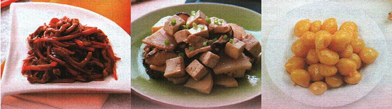 ②将姜末、虾米和香菇煸炒出香味,放豆腐块和鸡片、笋片,加酱油、料酒炒匀,加清水略煮,放盐调味即可。