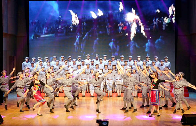 图为国家中医药管理局参演大合唱长征组歌《四渡赤水出奇兵》,国家卫生计生委副主任、国家中医药管理局局长王国强等领导及局直属单位职工参加。